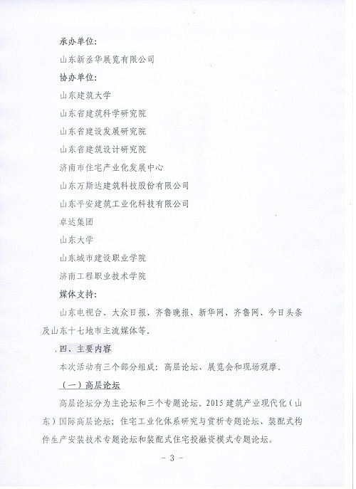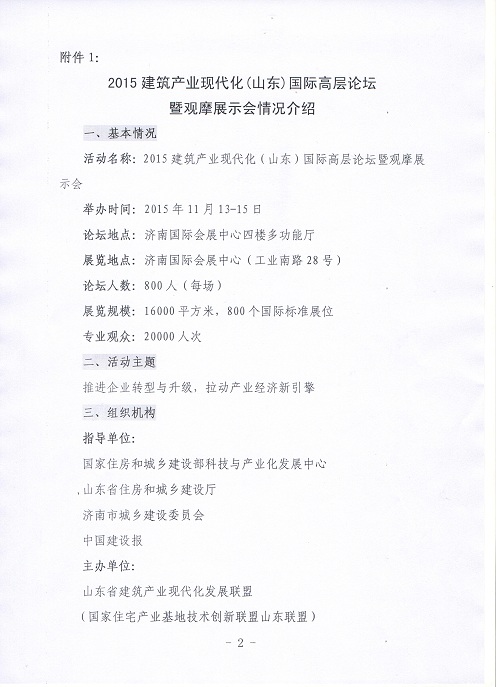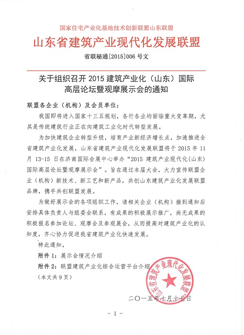 關(guān)于組織召開2015建筑產(chǎn)業(yè)化(山東)國際高層論壇暨觀摩展示會的通知